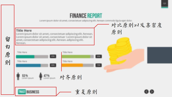领略排版之美PPT排版教程。领略排版之美,教你提升逼格,变身排版小达人。何为排版?是指将文字、图表、图形、图片等可视化信息元素在版面布局上调整位置、大小,是使版面布局条理化的过程。排版的经典步骤:明确排版的基本风格,确立版面主要类型、选定版式构成要素、依据排版原则布置……