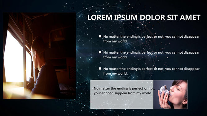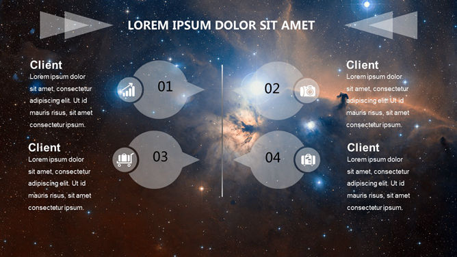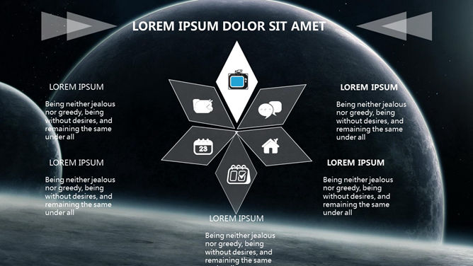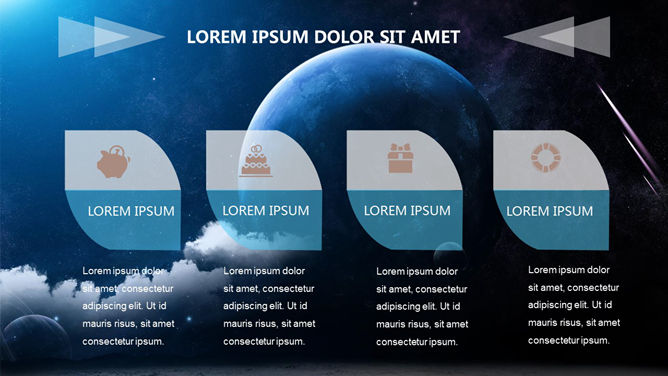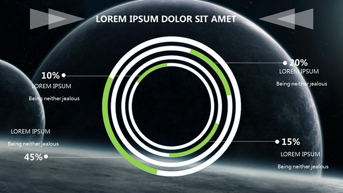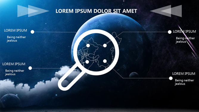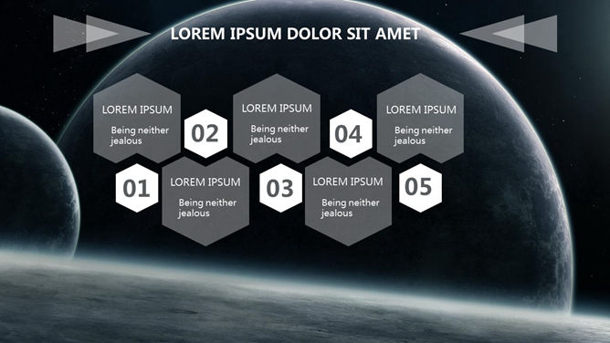 科技感浩瀚宇宙星空PPT模板。一份以宇宙星空星球为背景的幻灯片模板,半透明线条和几何图形装饰,科技范十足。