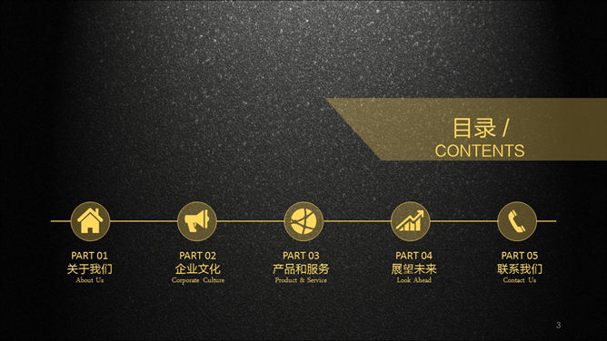超强公司介绍企业宣传PPT模板。一份高大上精品企业宣传公司介绍幻灯片模板,质感黑色磨砂毕竟,黄色主色调,半透明图形元素,炫酷动态演示效果,共51页,功能非常强大,包括关于我们、企业文化、产品和服务、展望未来和联系我们几个部分。所用字体:方正兰亭黑_GBK,请自行下载安装。