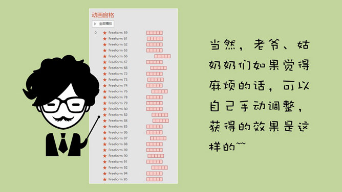 默呆P事儿第三话-拼接随机线动画。第一种思路:先将文字碎片化,然后对每个碎片制作随机线动画。这样的做法可以达到预期效果,但是每次更换文字的时候,需要重新制作碎片文字,不方便。第二种思路:用一些三角形盖在文字上,对三角形做动画处理,下面的文字就可以随机改动了。第二种思路明显优于前者。选中所有三角形,统一添加退出动画【随机线条】。然后,将所有的动画调整为【与上一动画同时】,持续0.15秒,重复5次……