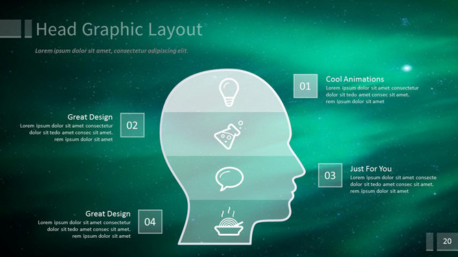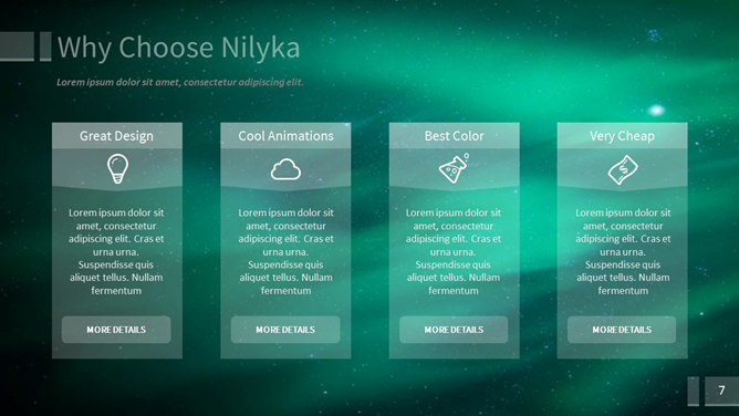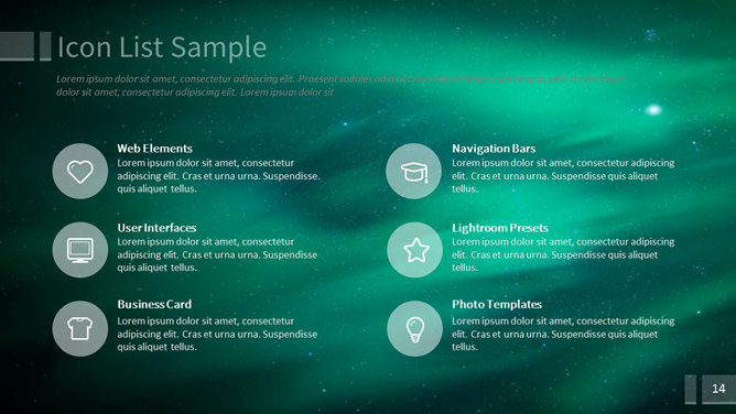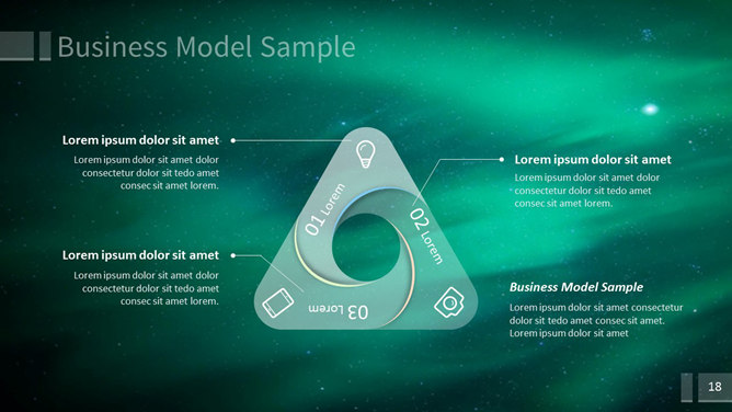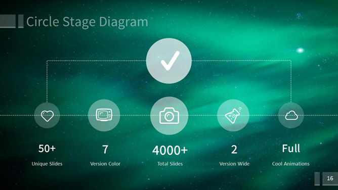 星空背景动态科技感PPT模板。一份时尚IOS风幻灯片模板,绚丽宇宙星空背景,半透明形状元素,很有科技感,好看的动态播放效果,页面丰富,另附带一组小图标。所用英文字体:Source Sans Pro。