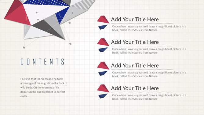 拼接三角形复古色系PPT模板。一份复古风幻灯片模板,采用拼接三角形装饰,淡雅柔和复古色系配色,适合主题广泛。