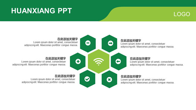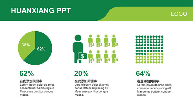 绿色简约大气商务PPT模板。一份商务风格幻灯片模板,养眼绿色主色调,框架完整,图形图表丰富,简约大气通用。