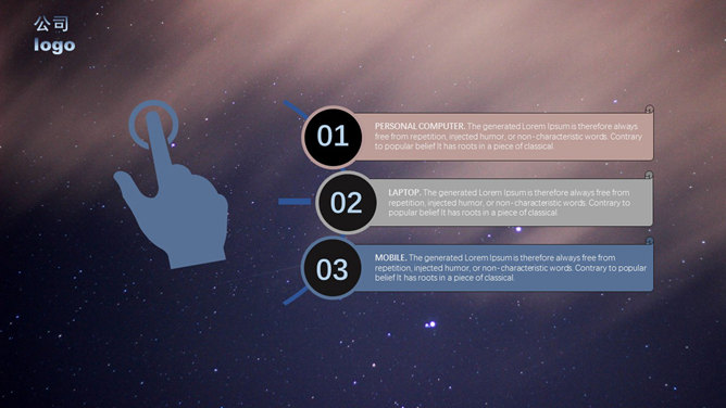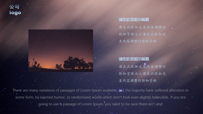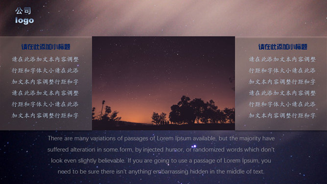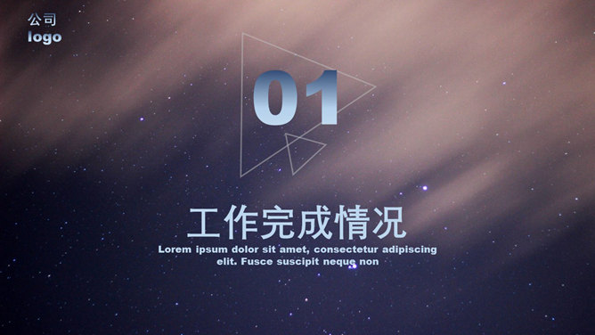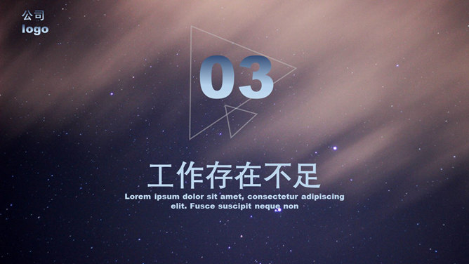 星空风工作总结汇报PPT模板。一份精美的工作汇报总结PowerPoint模板,时尚星空风格,华丽动态播放效果。建议安装字体: