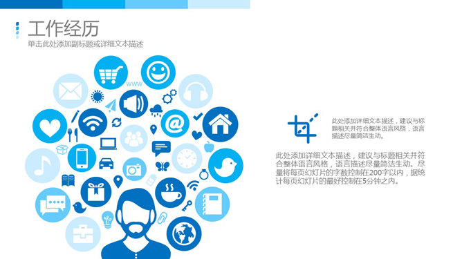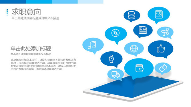 精美科技感求职简历PPT模板。一份精美实用的的个人求职简历幻灯片模板,清爽蓝色主色调,简约风格,动态效果,共32页,页面丰富强大,稍作修改也可以用于工作总结汇报等其他主题。