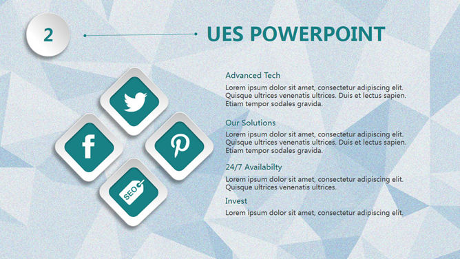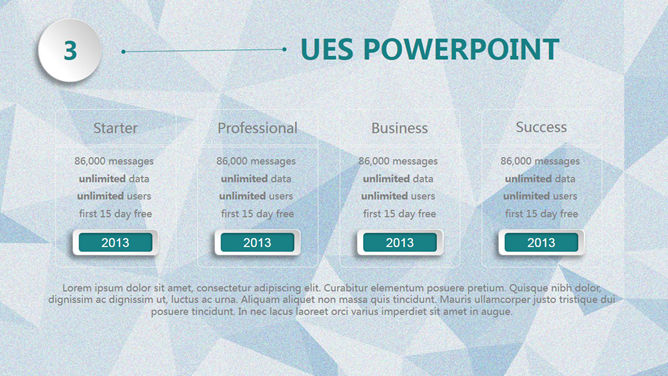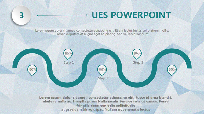 微立体多边形商务汇报PPT模板。一份微立体效果的工作总结商务汇报通用幻灯片模板,质感磨砂低面多边形背景。