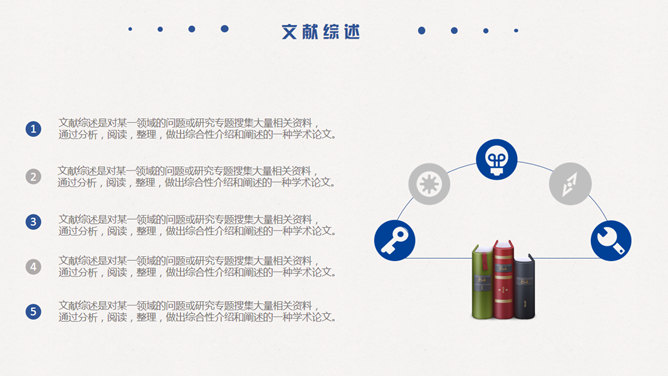 简洁大方毕业答辩PPT模板。一份简约大气的毕业设计论文答辩PowerPoint模板,学术严谨蓝色主色调,框架完整,动态演示效果。建议安装字体: