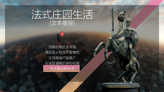 时尚大气地产提案PPPT模板。一份精美实用的房地产项目提案幻灯片模板,时尚全图背景设计,内容丰富,框架完整。
