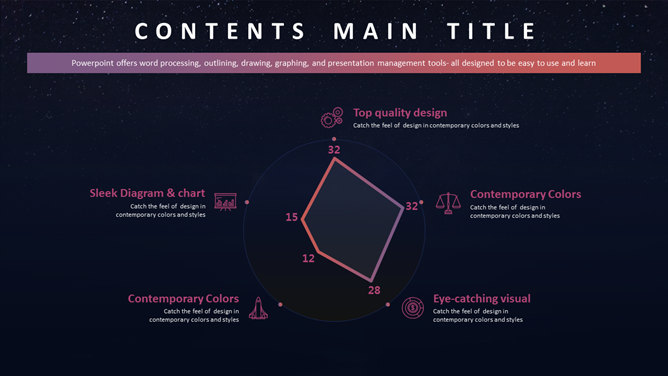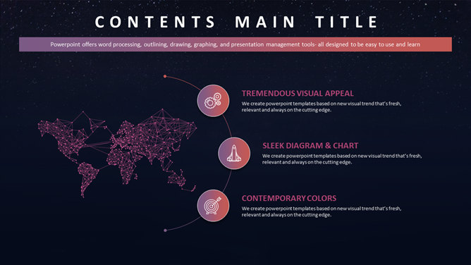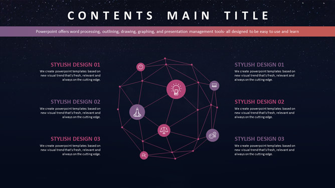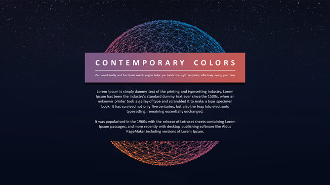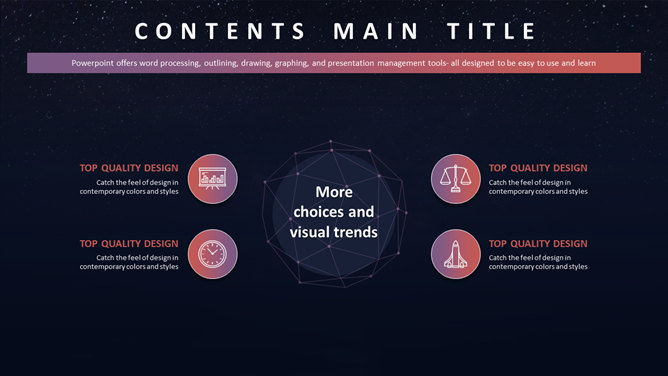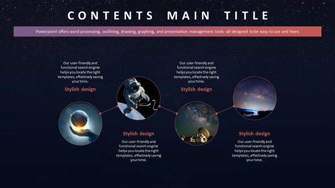 炫酷科技感宇宙星球PPT模板。一份好看的宇宙星球星空效果的幻灯片模板,很有科技感,共30页,页面类型非常丰富。