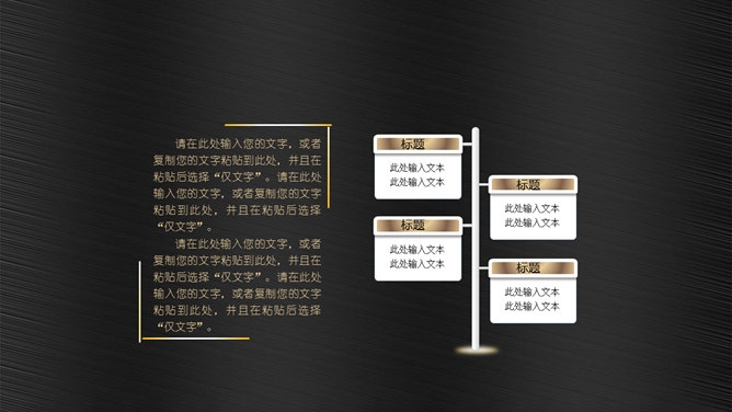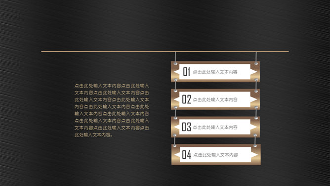 质感金属拉丝效果PPT模板。一份金属拉丝质感视觉效果的幻灯片模板,给高端奢华的感觉,适合企业品牌宣传等用途。建议安装字体: