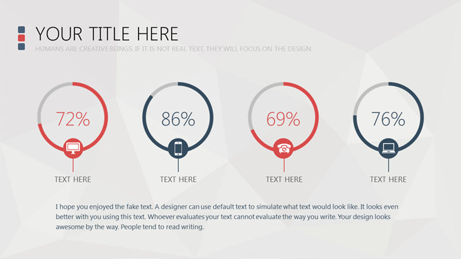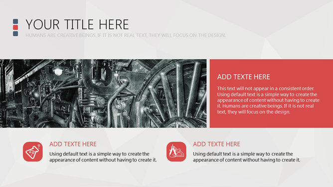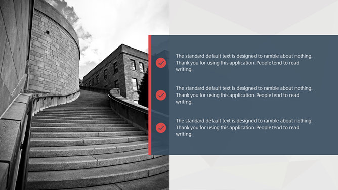 稳重大气商务风格PPT模板。一份精美大方的商务风格幻灯片模板,灰色背景,复古蓝红配色,简洁实用。