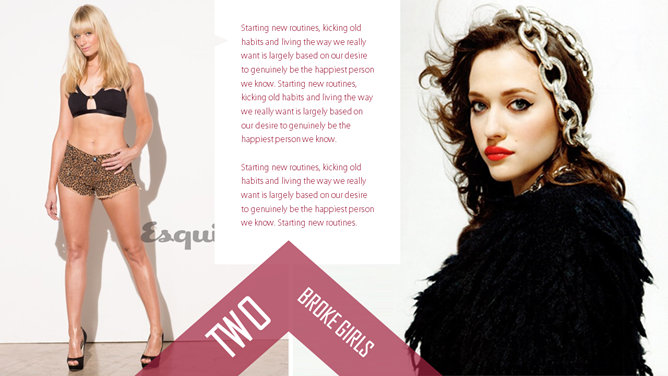 美剧《破产姐妹》主题PPT模板。一份以热播美剧《破产姐妹》为主题的PPT模板,时尚杂志风设计风格。