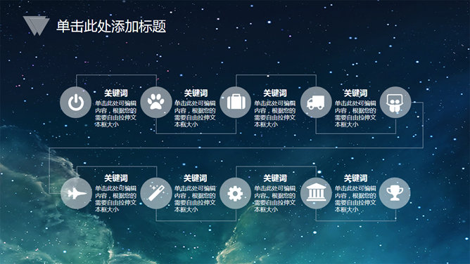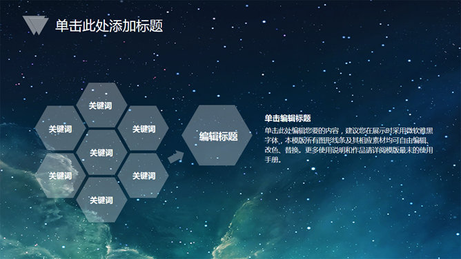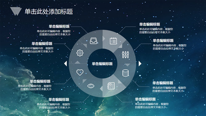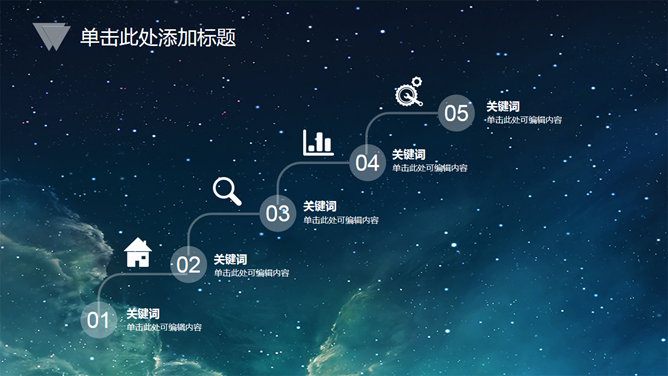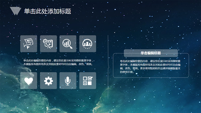 璀璨夜空星空IOS风PPT模板。一份苹果IOS风幻灯片模板,以璀璨的夜空星空图片为背景,半透明形状元素。