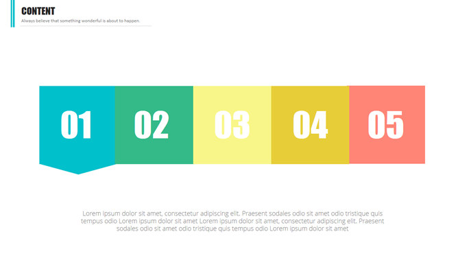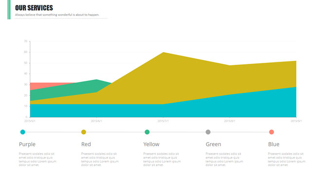 活力多彩简洁小清新PPT模板。一份小清新风格幻灯片模板,五种色彩搭配,动态演示效果,时尚活力,简洁清新。