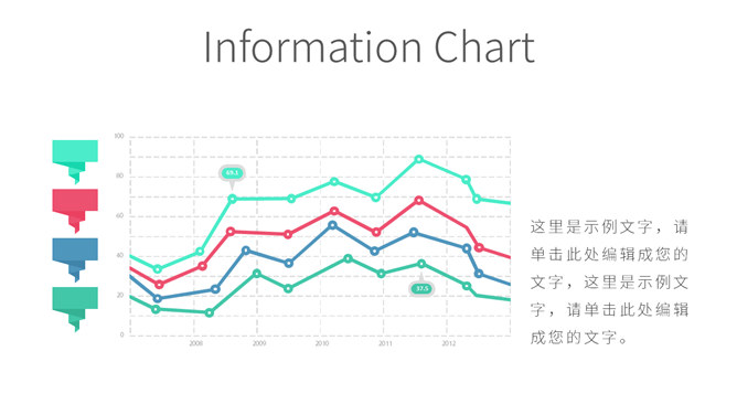 多图表清新简约商务PPT模板。一份简洁清新的商务幻灯片模板,以图形图表页面为主。使用字体: