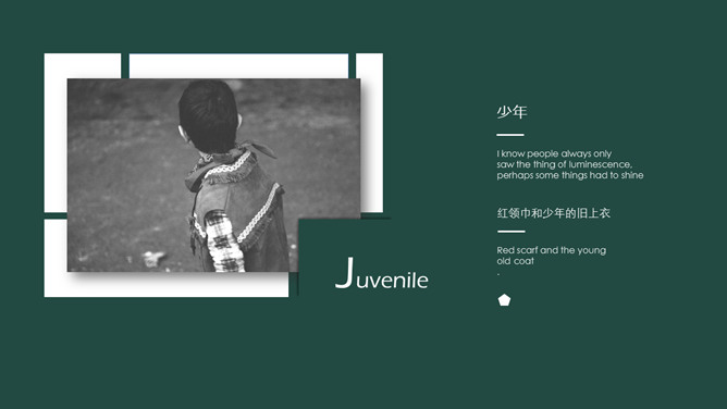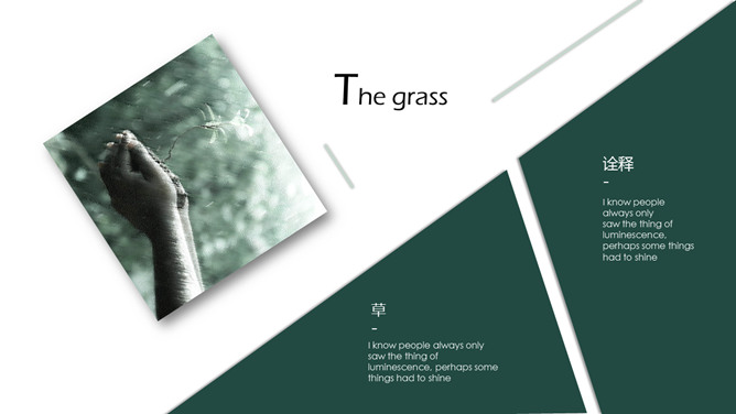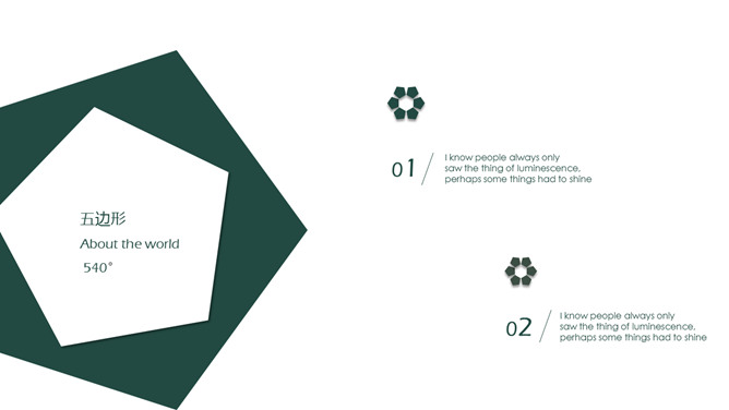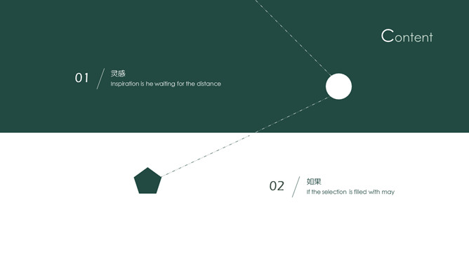 创意极简形状线条PPT模板。一份极简风格幻灯片模板,创意几何形状线条排版,墨绿配色,极具设计感。使用了如下字体:华文细黑、Andalus、Eras Medium ITC、Meiryo。