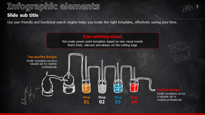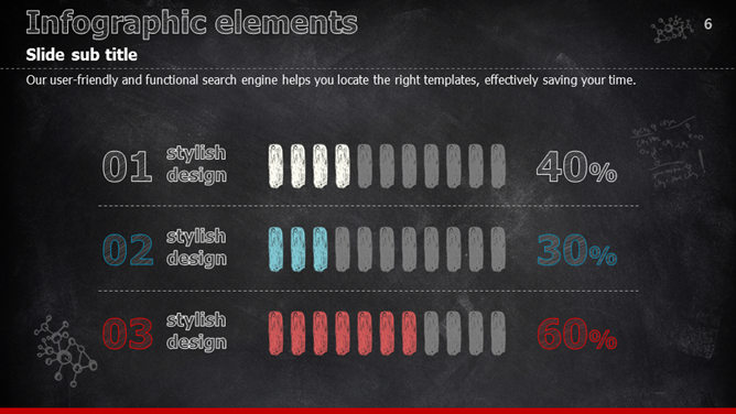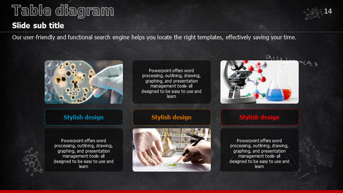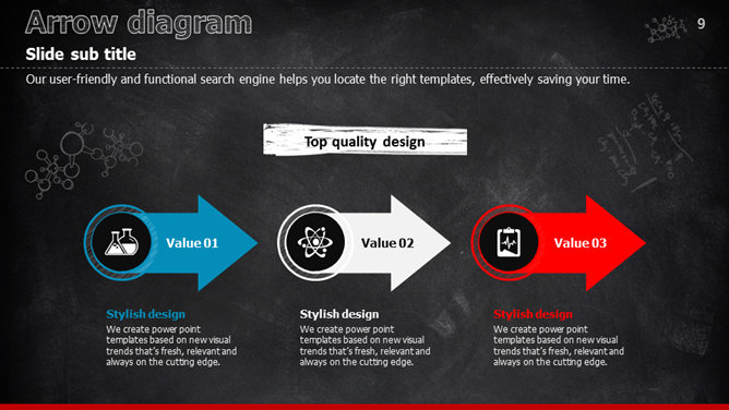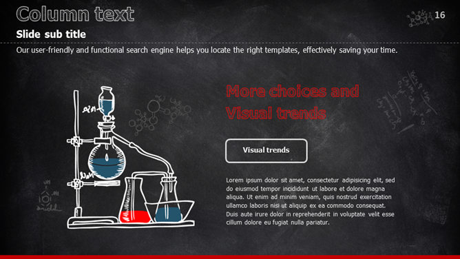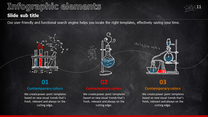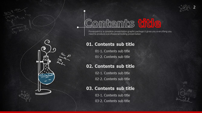 黑板手写粉笔字化学实验PPT模板。一份设计非常精美的黑板手写粉笔字效果幻灯片模板,蓝红黄三种配色,适合教育主题。