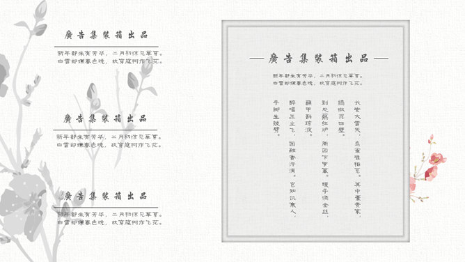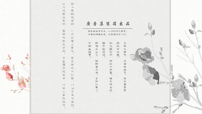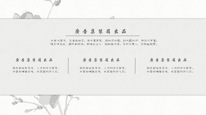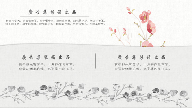 清新淡雅水彩中国风PPT模板。一套水彩画风格的幻灯片模板,多种文字排版布局,动态播放,淡雅清新。使用毛笔字体: