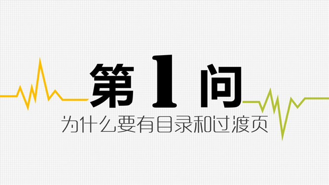 PPT逼格提升大法之目录&过渡页。PPT的目录和过渡页怎么做。第一问,为什么要有目录和过渡页。目录是开场的自我介绍,让受众做好心理准备,能帮助他们更好的理解具体内容。过渡页则负责承上启下,告诉你的受众,我马上要讲下一个内容了。第二问,目录和过渡页从哪里来。从封面中来……