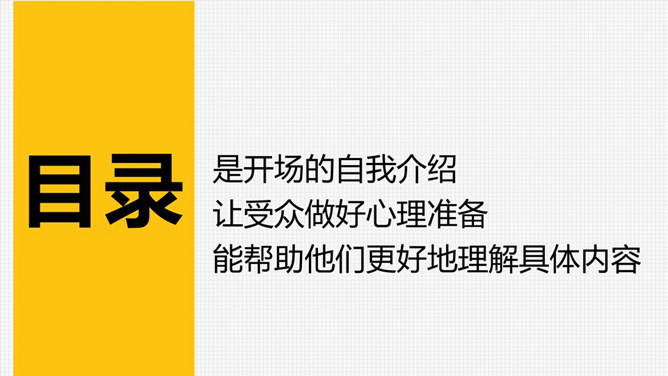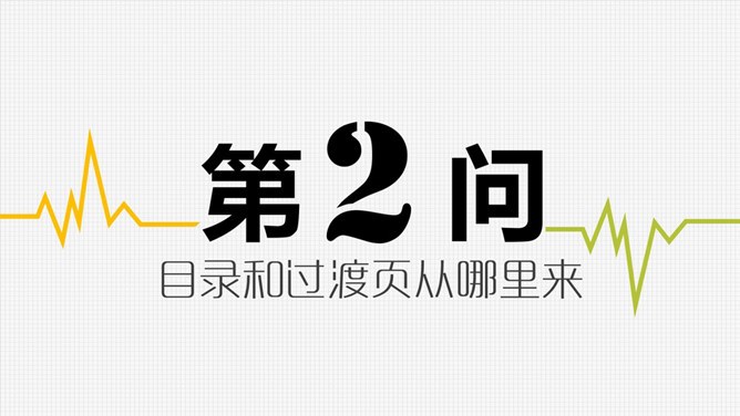PPT逼格提升大法之目录&过渡页。PPT的目录和过渡页怎么做。第一问,为什么要有目录和过渡页。目录是开场的自我介绍,让受众做好心理准备,能帮助他们更好的理解具体内容。过渡页则负责承上启下,告诉你的受众,我马上要讲下一个内容了。第二问,目录和过渡页从哪里来。从封面中来……