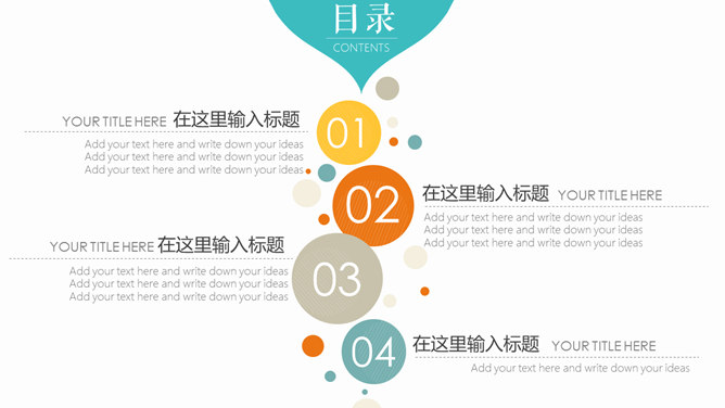 活力多彩气泡圆点PPT模板。一套多功能通用幻灯片模板,清新彩色配色,圆点泡泡装饰,用途广泛,通用性强。