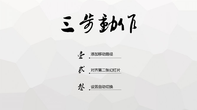 神奇移动动画效果制作PPT教程。三步模仿神奇移动。步骤:1、添加移动路径。2、对齐第二张幻灯片。3、设置自动切换。