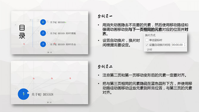 神奇移动动画效果制作PPT教程。三步模仿神奇移动。步骤:1、添加移动路径。2、对齐第二张幻灯片。3、设置自动切换。