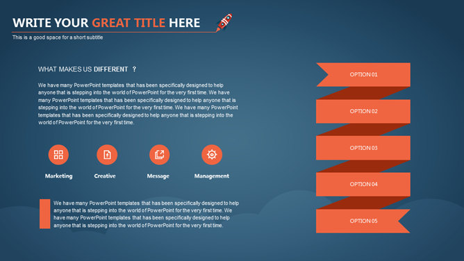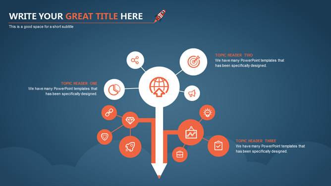 书本火箭星球卫星PPT模板。一份以小火箭为主题设计的幻灯片模板,可用于商务主题,也可用于教育类主题。