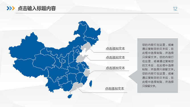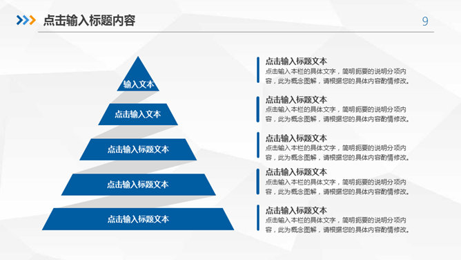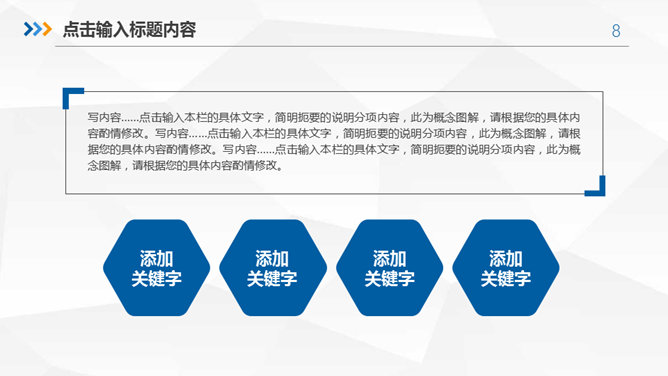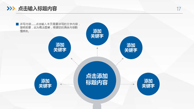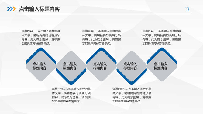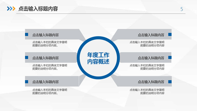 。一套大气稳重工作报告幻灯片模板,浅灰色低面多边形背景,蓝色主色调,漂亮的动态演示效果,适合年终工作总结、工作岗位述职报告等用途。