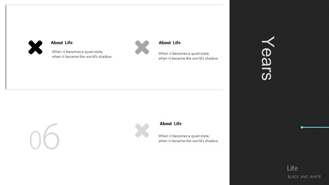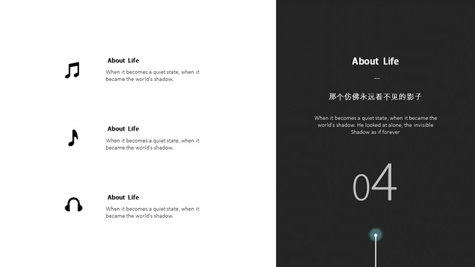 黑白简约创意设计PPT模板。一份极简设计幻灯片模板,素雅黑白配色,创意排版布局,很有设计感。此模板分类于: