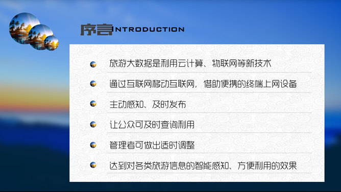 旅游大数据分析IOS风PPT模板。大数据分析已渗透各个产业,运用大数据可以精确化分析旅游业各方面的数据。