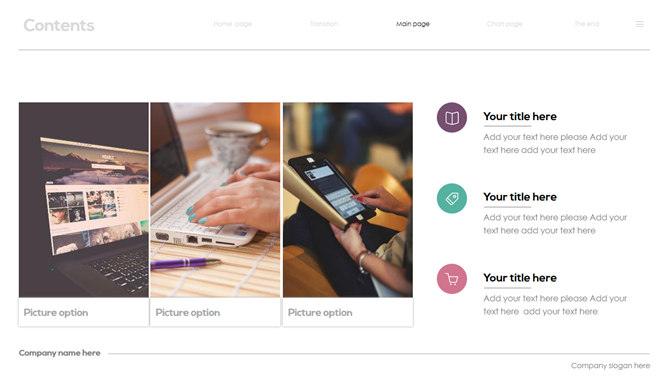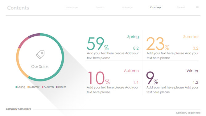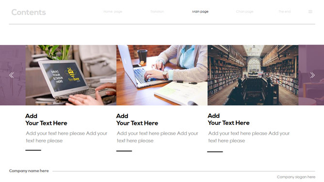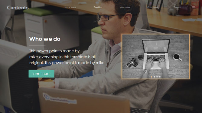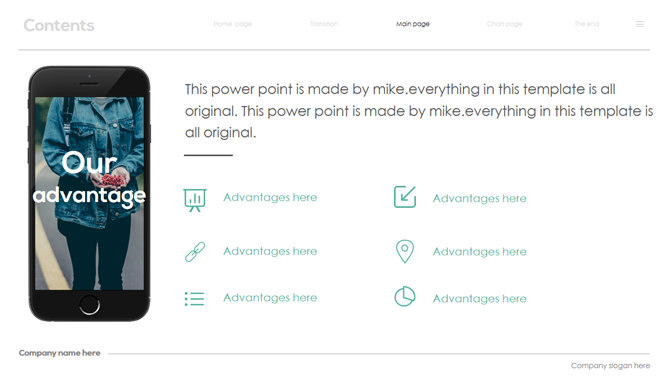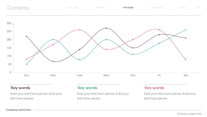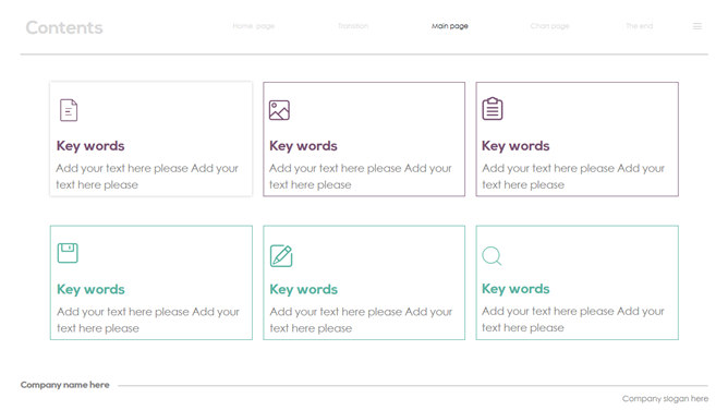 简约扁平化网页风PPT模板。一套时尚欧美风幻灯片模板,顶部导航网页风设计,大色块线条排版,扁平化设计风格。