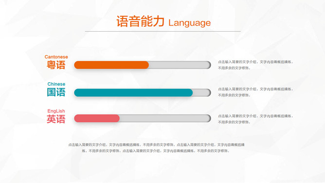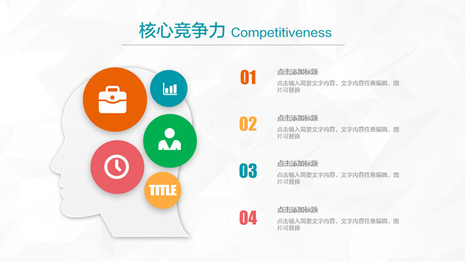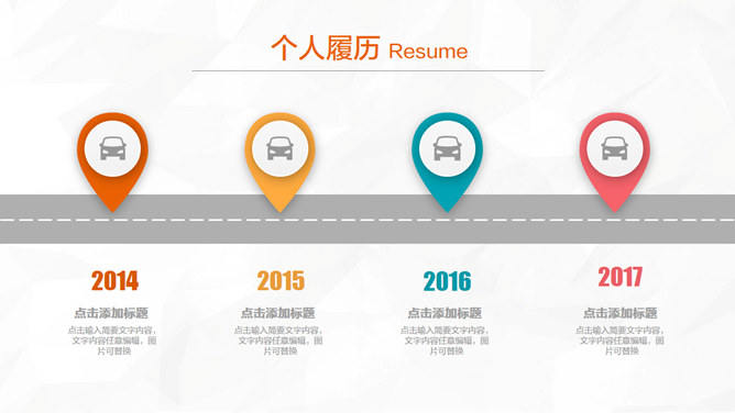 精美彩色个人简历PPT模板。一套清新多彩个人求职简历幻灯片模板,微立体视觉效果,动态播放,包括关于我、岗位认知、胜任能力、未来规划几部分。使用字体:方正兰亭中粗黑_GBK、方正兰亭准黑_GBK、方正兰亭细黑_GBK。