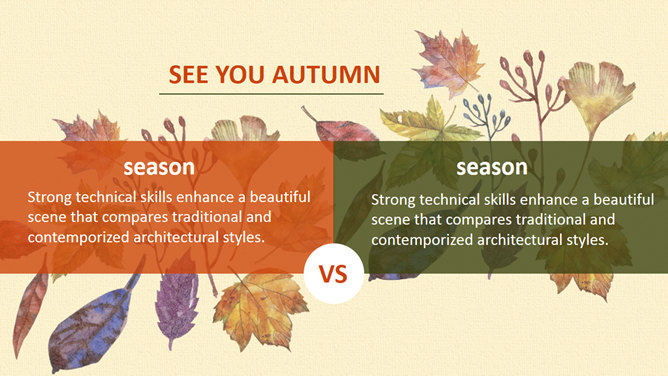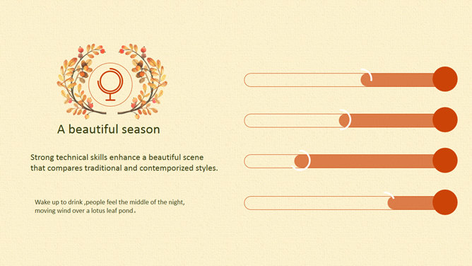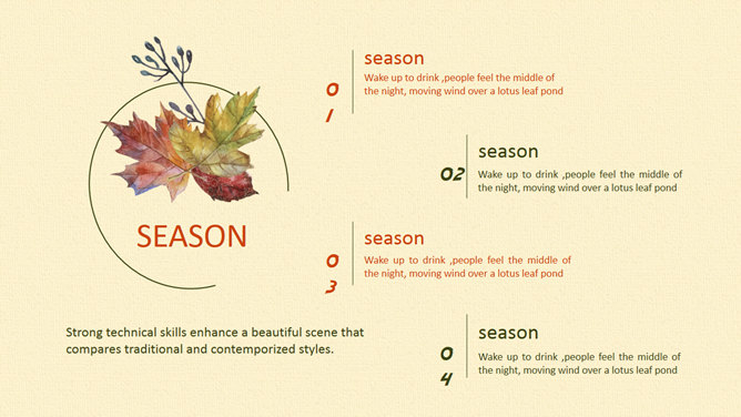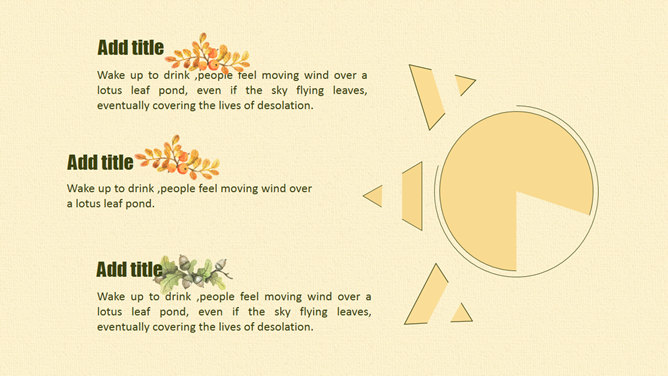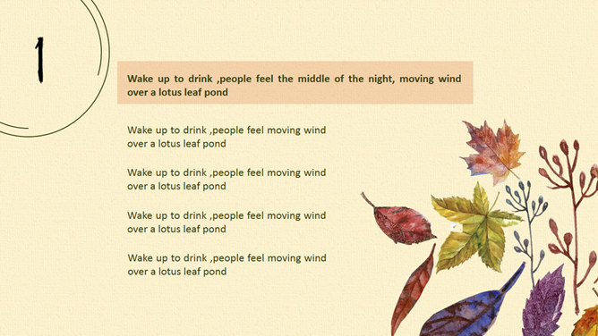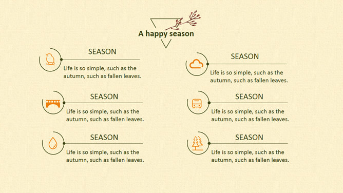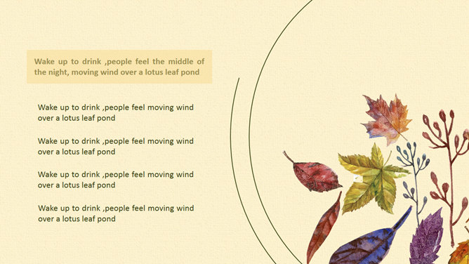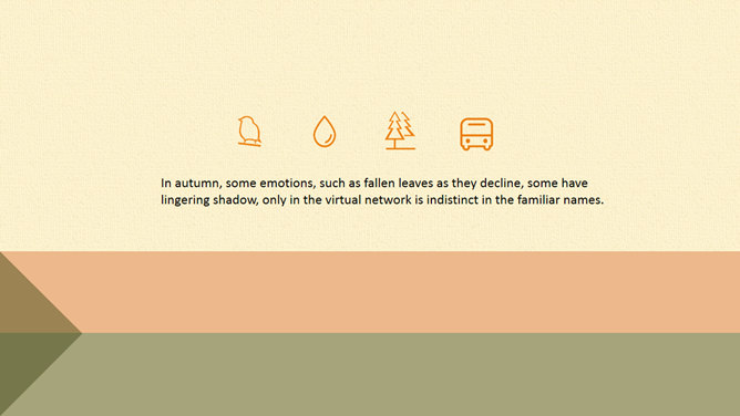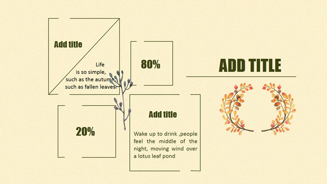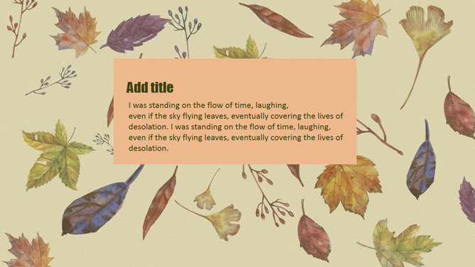 布纹背景秋天落叶树叶PPT模板。一套秋季秋天主题幻灯片模板,米黄色布纹背景,唯美秋叶落叶装饰。