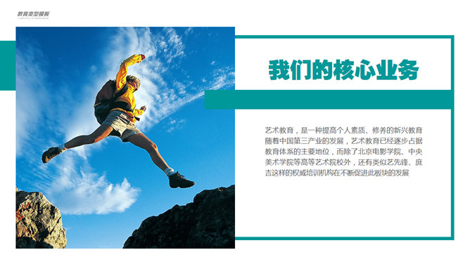 教育培训机构宣传介绍PPT模板。一套儿童教育培训机构宣传介绍幻灯片模板,整体风格大气稳重,包括课程研发、学校咨询、教育活动服务、出版服务、团队介绍等部分。使用字体:方正正大黑简体、方正超粗黑简体、汉真广标、Broadway。