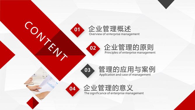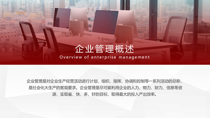 企业管理基础知识培训PPT模板。包括企业管理概述、企业管理的原则、管理的应用与案例、企业管理的意义等内容。
