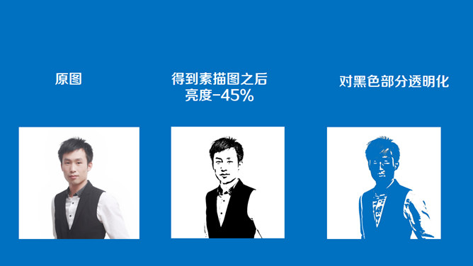 创意图片透视效果制作PPT教程。PPT之PS透明法,白色轮廓线条图,第1步:清晰度、对比度100%,饱和度0%。第2步:双击图片,艺术效果—发光边缘。第3步:颜色—设置透明色—(点击图片中的黑色部分),即可得到下图。