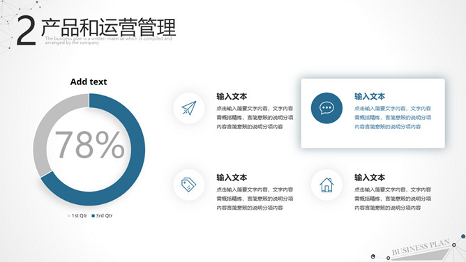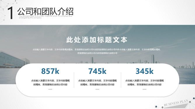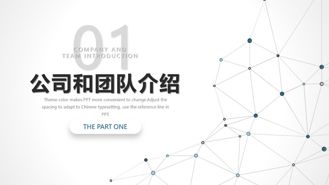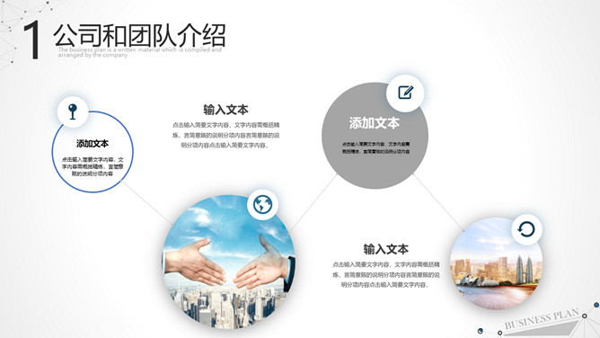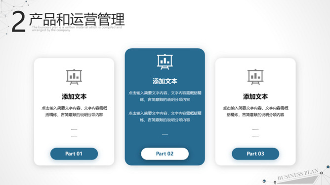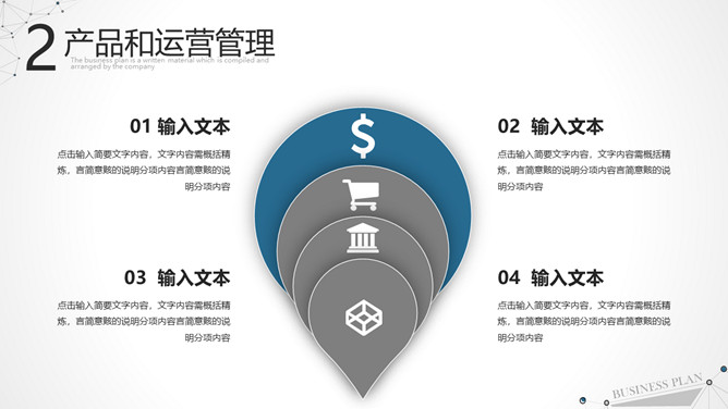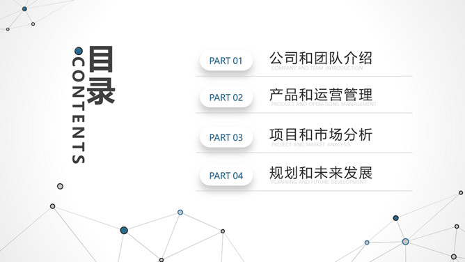 简约点线粒子商业计划书PPT模板。一套商业合作项目计划书模板,极简设计风格,灰色点线粒子背景,页面实用。
