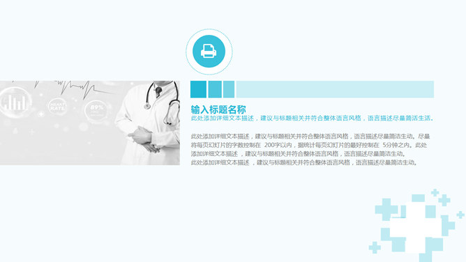 医院医生医疗总结报告PPT模板。一套医疗主题幻灯片模板,简约大气,页面丰富,适合医院医生工作总结汇报使用。