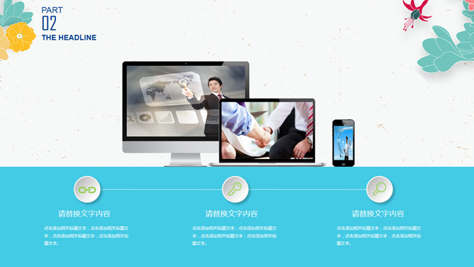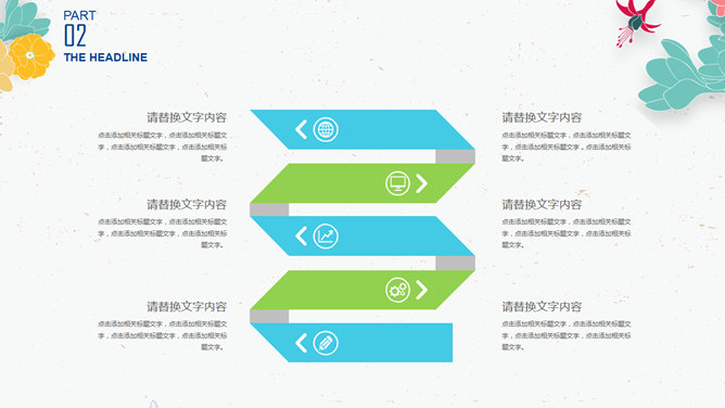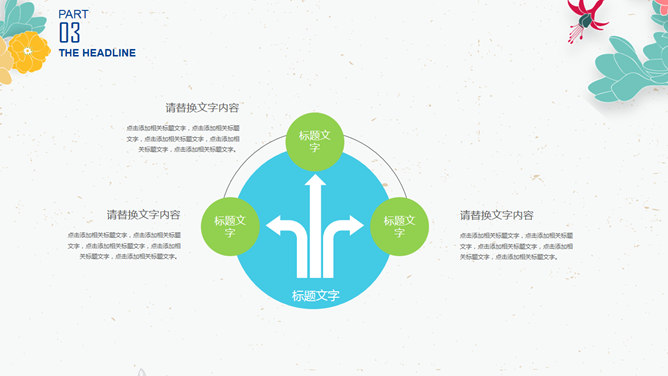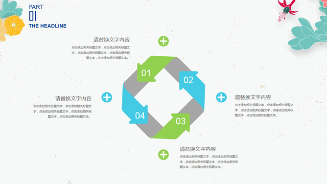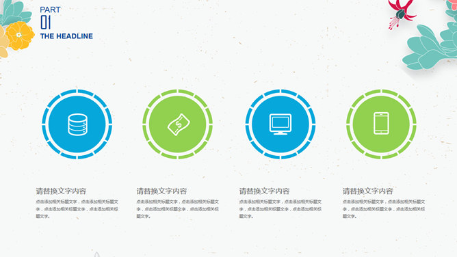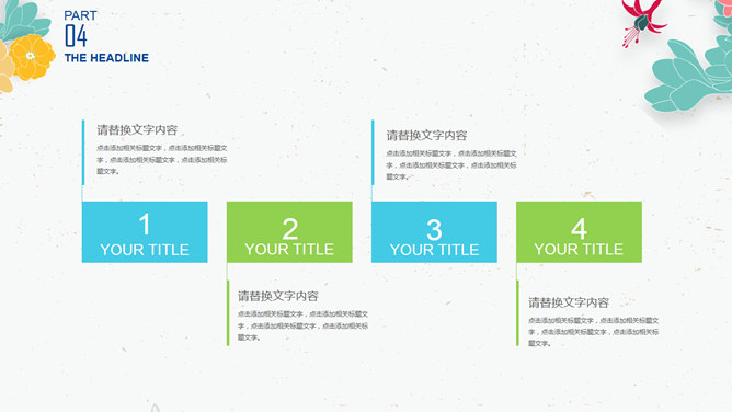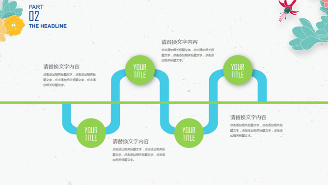 小清新插画风小花PPT模板。一套非常好看的幻灯片模板,插画风小花装饰,简约清新,动态效果。建议安装字体: