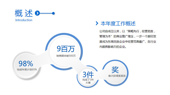 。一套年终工作总结汇报新年计划幻灯片模板,大气蓝色主色调,微粒体视觉效果,动态播放效果,页面丰富,框架结构完整。