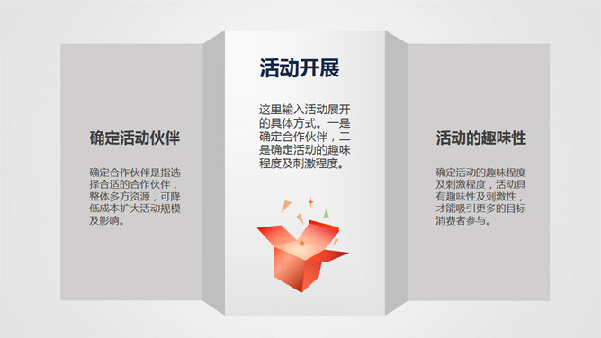 大气灰色商业活动策划PPT模板。一套商业活动策划书幻灯片模板,稳重灰色色调,简洁大气,框架完整。