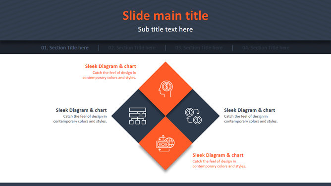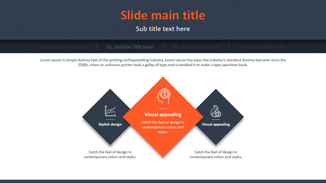 悬浮效果欧美商务PPT模板。一套商务风格PowerPoint模板,悬浮图片效果设计,橙蓝配色,简约大气。