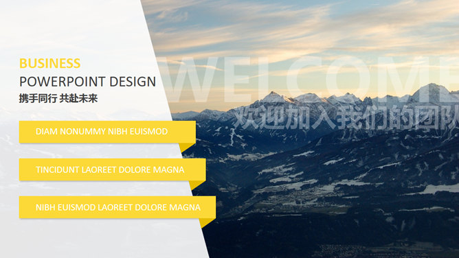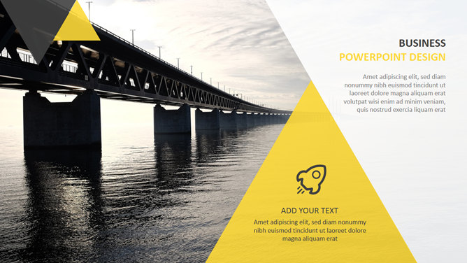 跨海大桥时尚商务PPT模板。一套大气时尚商务幻灯片模板,宏伟跨海大桥背景,几何形状色块拼接设计。