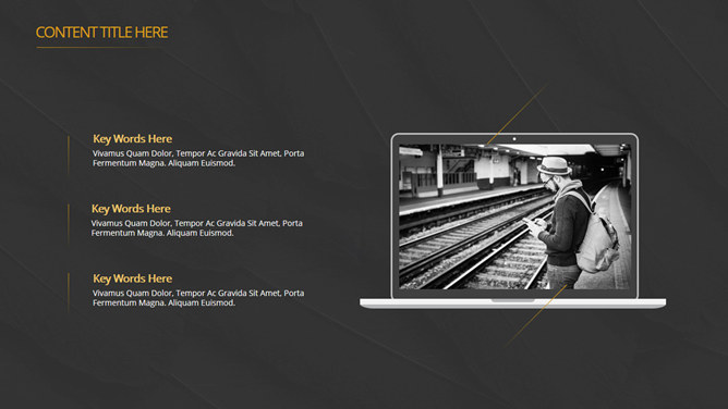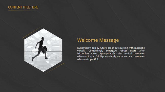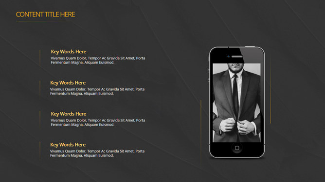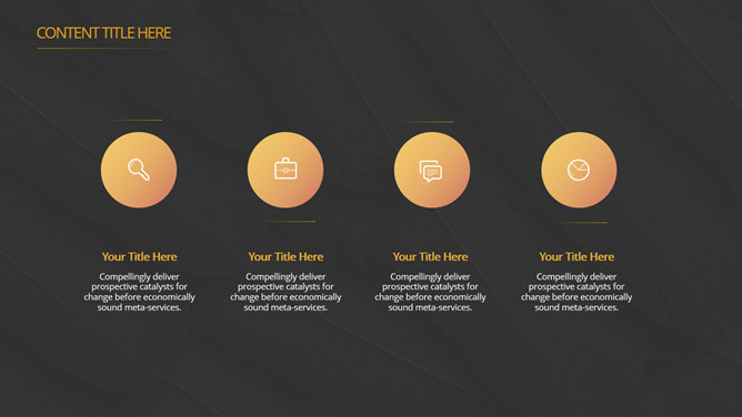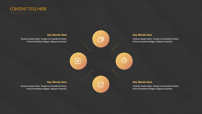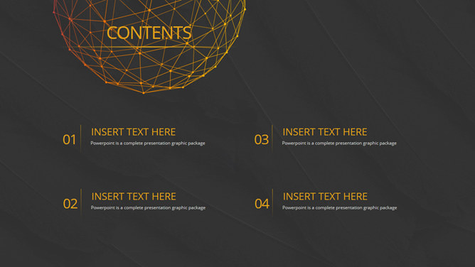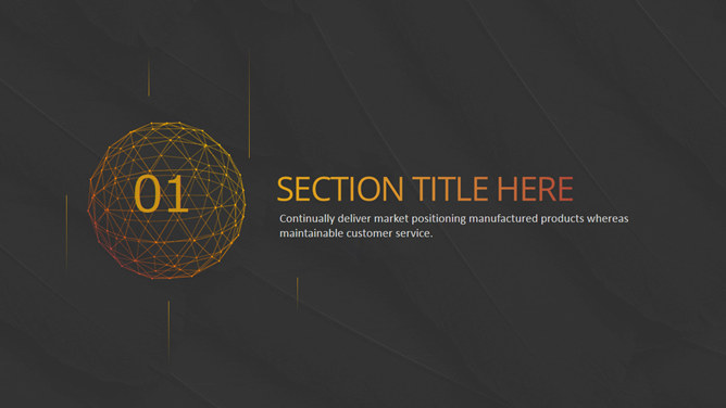 高逼格点线科技感PPT模板。一套精美简洁通用幻灯片模板,经典黑金配色,动态点线球体装饰,很有科技感。