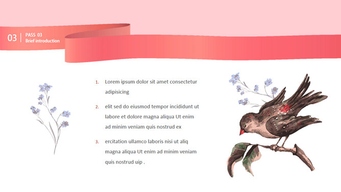 小清新复古欧式花鸟PPT模板。一套小清新风格幻灯片模板,欧式复古花鸟装饰,粉色系配色,适合女生使用。