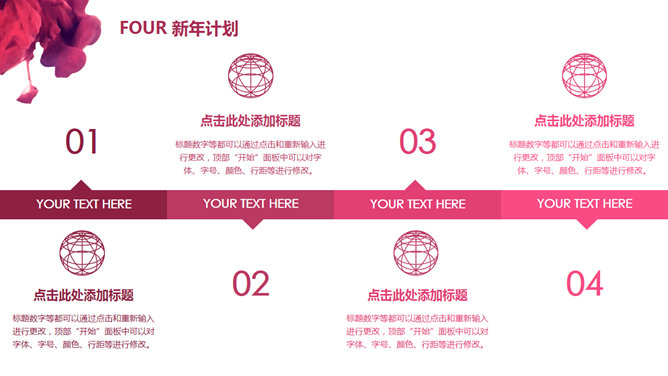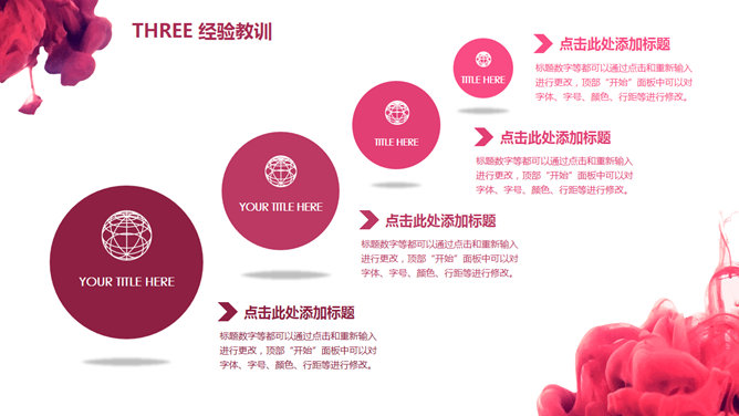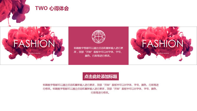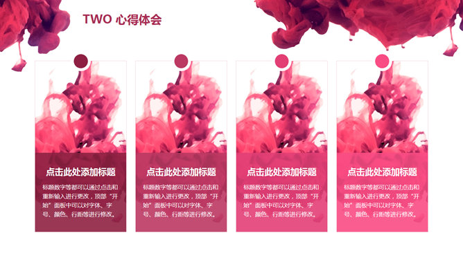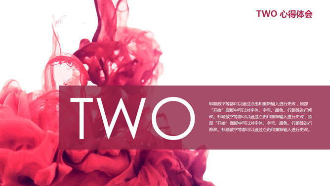 创意颜料入水效果PPT模板。一套有创意的艺术设计幻灯片模板,采用红色颜料入水效果为背景图片,框架结构完整。