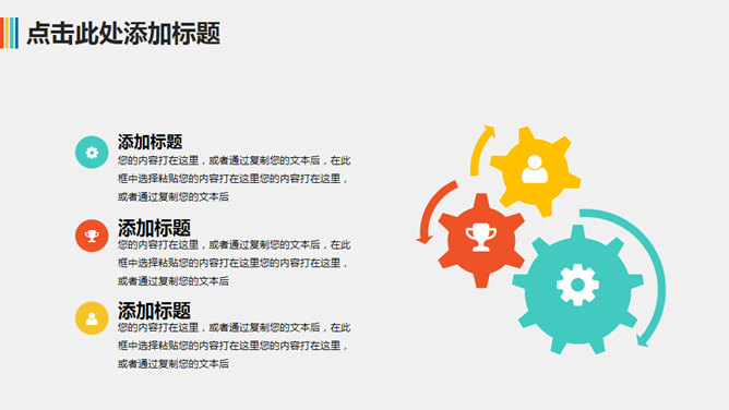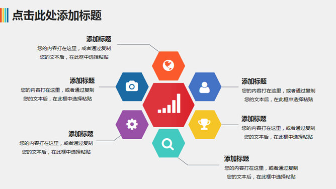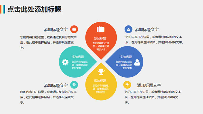 热气球年终汇报述职通用PPT模板。一套年终工作总结汇报、述职报告通用幻灯片模板,清新多彩配色,页面类型丰富,框架结构完整,动态演示效果。