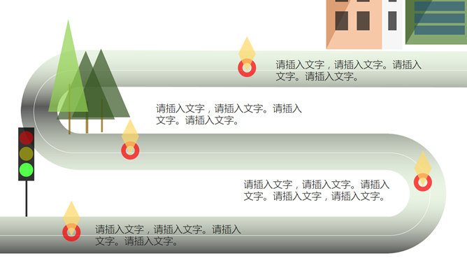 创意动态卡通扁平化PPT模板。一套扁平化卡通幻灯片模板,太阳、云朵动态飘动,创意动画效果是亮点。