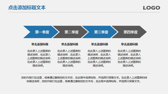 上升箭头商务汇报PPT模板。一套大气商务风格总结汇报幻灯片模板,灰色背景蓝色主色调,低调稳重大方。